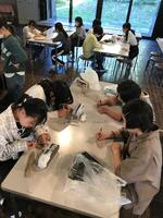 みんな真剣な様子で作っていました。仕上げはニスを塗ってきれいにしました。