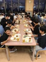 夕食の時間です。みんな午後の活動も頑張ったので、お腹ペコペコのようです。