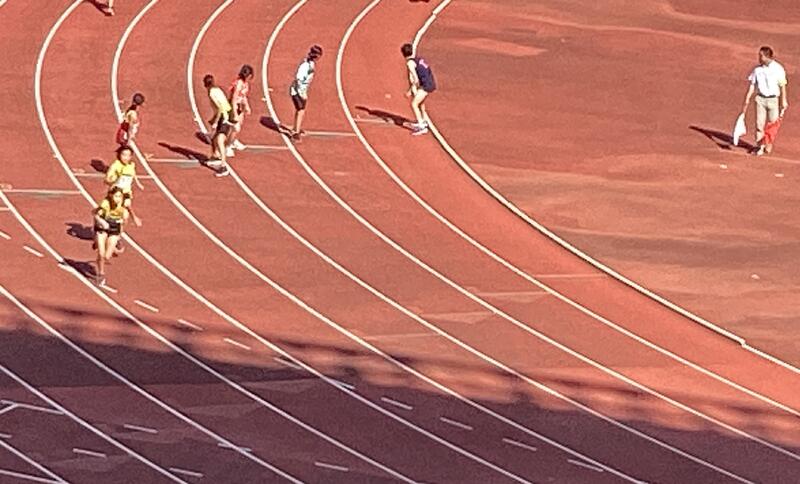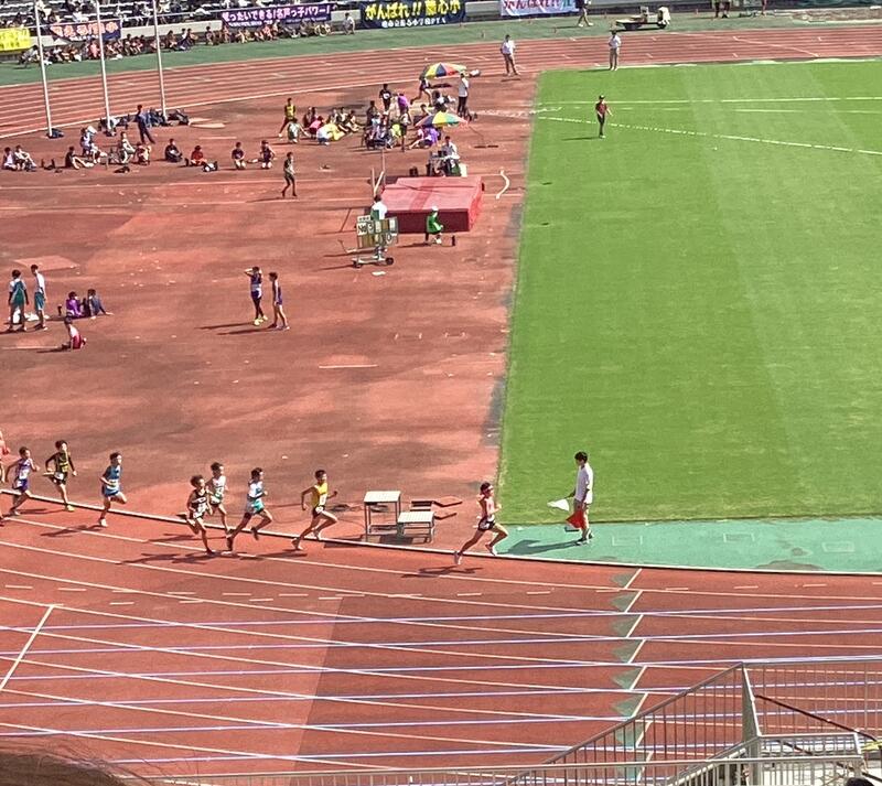 800m走:トップ争いのデッドヒート。この後、トップに躍り出て1位でゴール。