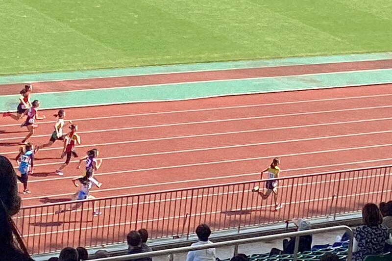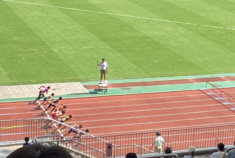 100m走:素晴らしいスタートからトップ争いをしました。