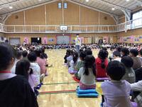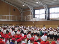 1年生は、5年生が作ってくれたメダルを首にかけ、6年生と手をつないで体育館に入場しました。全校で歌を歌ったり、一緒に遊んだりして楽しく過ごしました。1年生からは、お礼の言葉をしっかりと言うことができました。