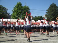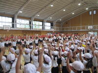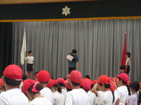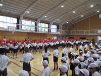 今日は、2回目の全校での運動会練習でした。朝からの雨で、外では行うことができず体育館での応援合戦の練習となりました。しかし子供たちはそんなことには負けません。応援団が中心となって、一生懸命応援練習を行っていました。