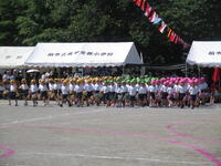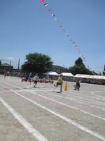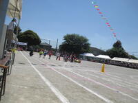 最後は、紅白対抗リレー。今年度は低学年リレーも加わりました。子供たちも走者ごとに入れ代わる順位に大いに盛り上がりました。