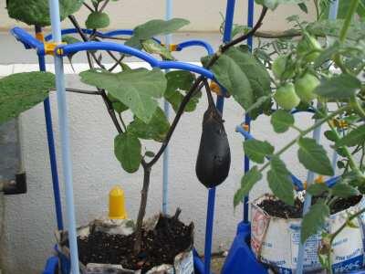 2年生が育てている野菜です。ミニトマトに続いてナスも実ってきました。