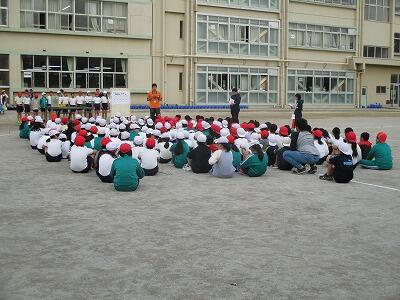 開会式です。高学年は、体育委員が進行します。これから始まります。