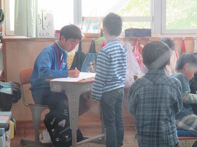 主に低学年の学級に入り,担任の先生の補助をしています。