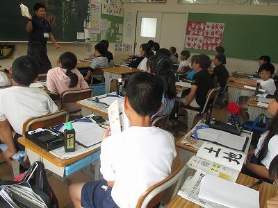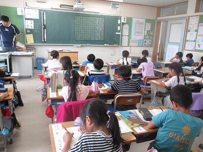 6年生の英語。専科の先生とALTの先生が授業をしています。