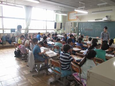 3年生の算数。算数支援員の先生も加わって、割り算の勉強です。