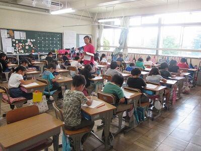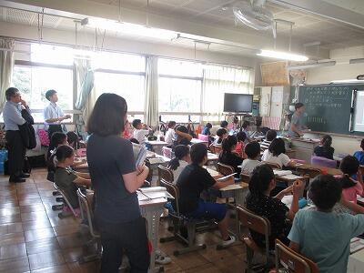 異校種交流という研修で、小学校の児童や授業を見にきています。