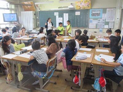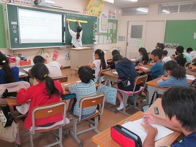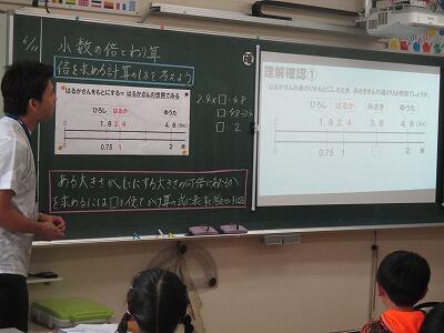 5年生の各担任が参観して、わかりやすい授業の進め方を研修します。
