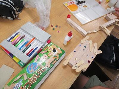 エプロンを制作しています。しつけ縫いからミシン縫いに進んでいます。