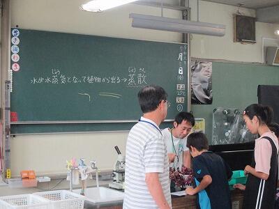 植物の蒸散についての学習です。理科教育支援員の先生も一緒です。