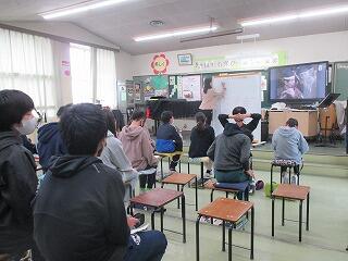 6年生のクラスで,雅楽の鑑賞を中心にした授業でした。「越天楽」という曲で,洋楽のオーケストラとの違いについて,発表していました。とても積極的に取り組んでいて,感心しました。