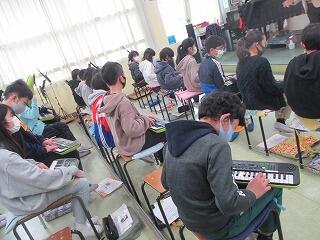 後半は「越天楽今様」の曲にキーボードをで音を重ねて,和の音階の感じを味わっていました。