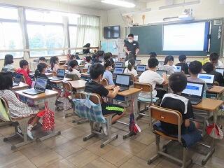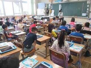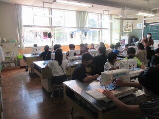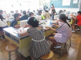 今日は空縫いで練習していました。初めての学習なので少し緊張した様子。とても真剣で,友達の様子をみまもりながら,取り組んでいました。