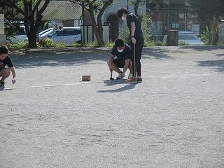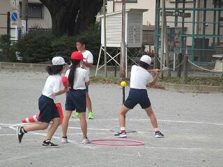 久しぶりに晴れて爽やかな天気になりました。1年生の外体育の様子です。