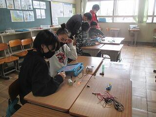 指示通りに電球が点いたり消えたりすると「ワー!」と歓声があがりました。