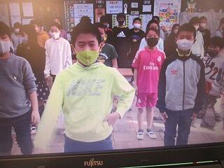 6年生は教室で動画を見ながら,とても喜んでいる様子で笑顔で拍手をしていました。