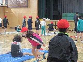 体育は,マット運動でした。新型コロナの関係で,密にならず接触しないで運動できるよう工夫して取り組んでいました。どの児童も体育に真剣に取り組んでいました。
