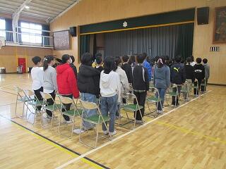 今日も卒業式の練習をしました。一方で奉仕作業も行いました。☆座る姿が立派です。