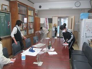 感染予防のためクラスごとに行っています。