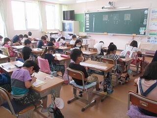今日から2年生以上は一斉登校でした。分散登校の倍ですので教室は少し窮屈な感じがします。しかし,子どもたちは,節度を守り,静かに授業を受けていました。