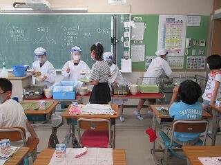 準備も片付けもとても頑張っています。おかわりをする子もいます。