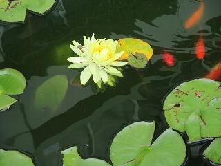 職員室の前の池のスイレンの花が咲きした。金魚もうれしそう!