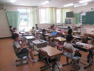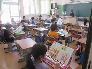 2年生は音楽の授業でした。鍵盤ハーモニカの指使いや手拍子でリズムの学習をしていました。