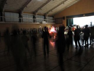 おやつと夕食のあとは,キャンプファイアー,そのあとは,真っ暗な学校中で「エキサイティングかくれんぼゲーム」を行いました。まっくらな学校はスリル満点で,子どもたちは楽しく活動していました。