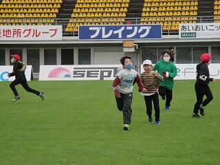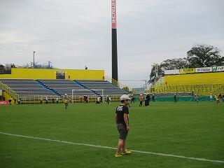 ここでも競技場に降りてトラックを歩かせてもらいました。