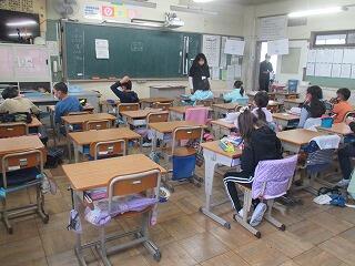 2教室に分かれてプリントや学校の宿題に取り組みます。