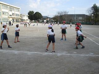 4年生の子どもたちは、ルールを知り,チームで作戦を考えながら練習をしていました。