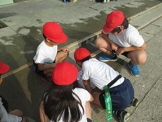 2年生は天気が回復して,雨の心配がなくなったので,全員で外に出ました。