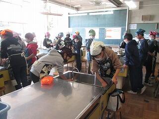 6年生が調理実習をしていました。気づいたときにはもう終わっていて,ちょうど片付けているところでした。
