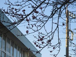 体育館と図工室の前の紅梅が咲きました。