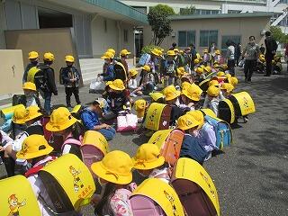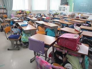 避難訓練を実施しました。地震を想定して,まず机の下に入ること。頭を守ることを指導しました。静かに担任の話を聞いて,素早く行動できていました。