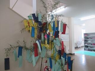 もうすぐ七夕です。校内には七夕の飾りが飾られています。共通の願いは「コロナの収束」でしょうか・・・・ 将来の職業を書いている子もいます。