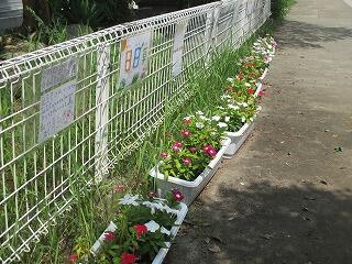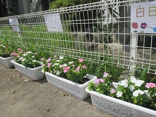 栽培委員会が日日草を栽培しています。