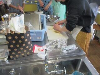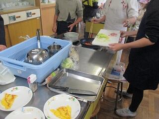 野菜炒めやスクランブルエッグ等・・・自分たちでメニューを決めたそうです。班で協力して作業していました。