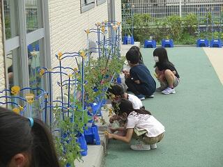 夏の野菜 投稿日時 : 2021/06/24 風早北部小学校管理者 2年生が中庭で野菜を育てています。トマト・オクラ・ミニトマト・ピーマン等です。水やりの様子はとても楽しそうでした。「校長先生!見て見て!」と駆け寄ってきて見せてくれました。 {{options.likeCount}} {{options.likeCount}}