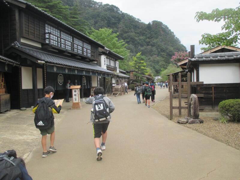 江戸村では,グループごとに楽しそうに歩いていました。江戸時代の生活がわかりやすく展示されており,家並みや道具等も本物そっくりに再現されています。これをよい機会に歴史の学習に興味を持ってくれたらよいと思いました。食べ物で人気だったのは,花見団子です。楽しくおいしい思い出ができました。