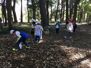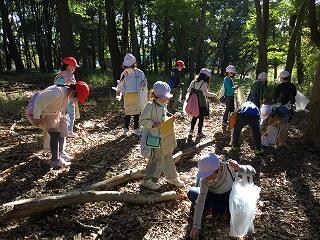 赤く色づいた葉っぱや木の実を拾ってきました。この日も良い天気で,みんな楽しく活動していました。
