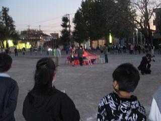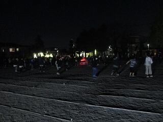 日が沈み雰囲気が出てきました。キャンプファイアーの始まりです。