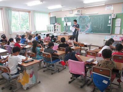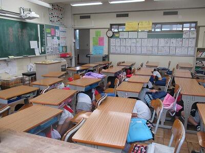約4分で全校児童が校庭に避難しました。