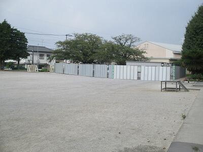 体育館工事のためのフェンスができています。