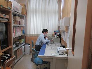 待っている児童の様子です。(3年)Drと検診を受けている児童はついたての奥です。