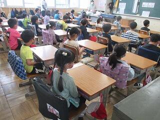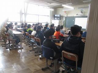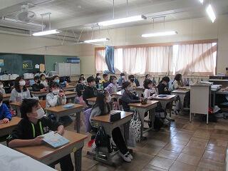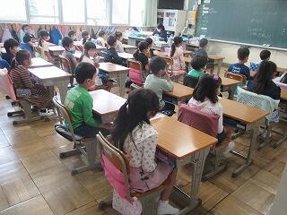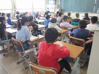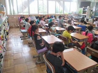 5月の全校朝礼を行いました。校内放送で行いました。連休明けでしたが,皆お話をしっかりと聞いていました。
