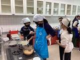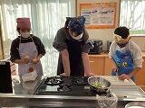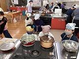 家庭科で調理実習を行いました。各班で協力して取り組んでいました。