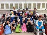 家庭科の学習で「自分でつくったエプロン」を着て、調理実習を行いました。